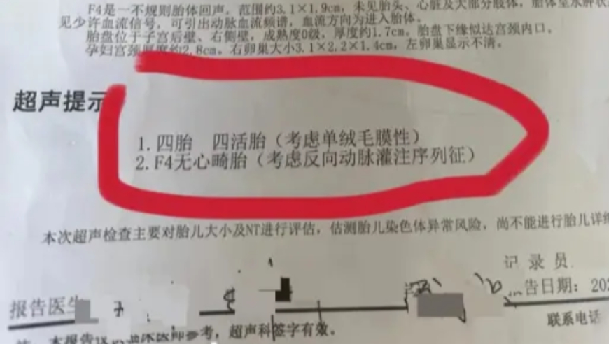 孕妇两个月内从一胎变四胞胎,每次产检多出一胎,医生:系同卵四胞胎